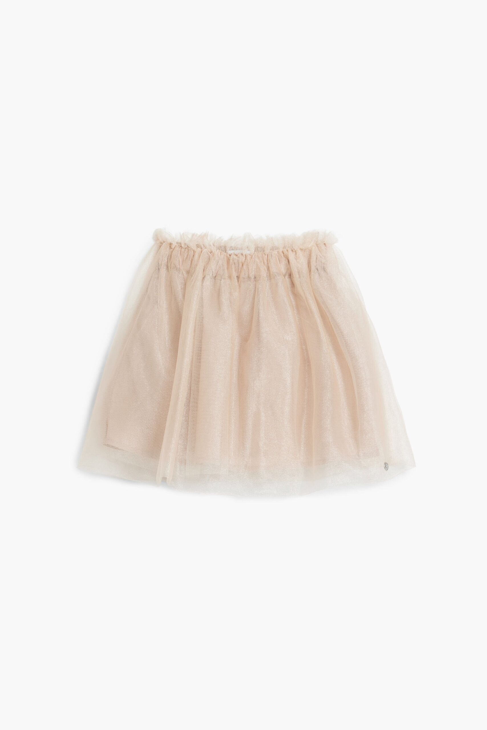 Korte rok in ballerina-stijl van tule, met metallic afwerking en elastische tailleband met plooien.