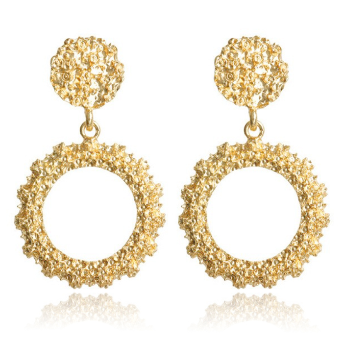 Het metaal heeft een unieke gedeukte structuur, die de oorbellen een extra interessante en moderne look geeft.