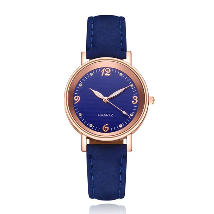 Dit elegante dameshorloge biedt niet alleen stijl, maar ook functionaliteit. Met zijn sierlijke uuraanduiding en lichtgevende wijzers is de tijd altijd gemakkelijk af te lezen, zelfs in het donker. De metalen behuizing is voorzien van een roségouden coating, wat zorgt voor een luxe uitstraling. De zachte lederen band in een tijdloze blauwe kleur voegt een vleugje elegantie toe aan het horloge. Dit horloge is de perfecte keuze voor vrouwen die op zoek zijn naar een verfijnd en veelzijdig accessoire om hun stijl te completeren.