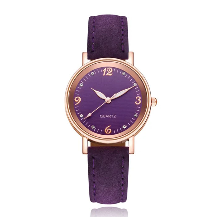 Dit elegante dameshorloge biedt niet alleen stijl, maar ook functionaliteit. Met zijn sierlijke uuraanduiding en lichtgevende wijzers is de tijd altijd gemakkelijk af te lezen, zelfs in het donker. De metalen behuizing is voorzien van een roségouden coating, wat zorgt voor een luxe uitstraling. De zachte lederen band in een opvallende paarse kleur voegt een vleugje speelsheid toe aan het horloge. Dit horloge is de perfecte keuze voor vrouwen die hun outfit willen verfraaien met een elegant en praktisch accessoire.