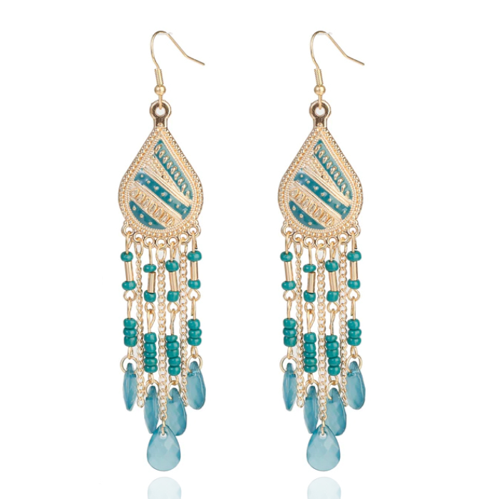 De druppelvormige hanger is het centrale punt van de oorbellen en is afgewerkt met een goud met groene afwerking.