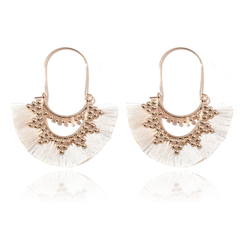 Deja Jewels Bohemian Gouden Oorbellen met Witte Franje Waaierhangers