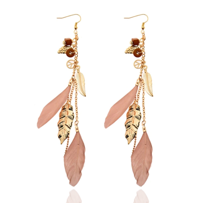 Ook hangen er 2 echte, bruine veertjes, die een natuurlijke touch geven aan de oorbellen.