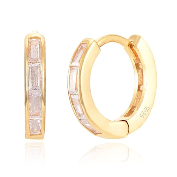 Elenza Goudkleurige Hoepel Oorbellen met Zirkonia Baguettes