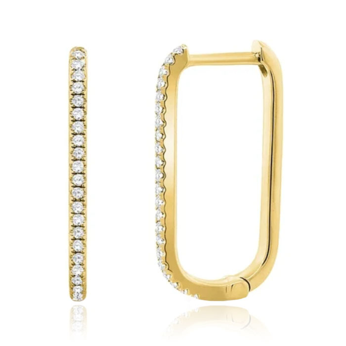 Deze unieke rechthoekige Elenza oorbellen zijn goudkleurig en bezet met glinsterende zirkonia's, wat zorgt voor een elegante en moderne look. Gemaakt van sterling zilver .925, zijn deze oorbellen perfect voor de modebewuste vrouw die houdt van strakke, geometrische vormen. Ideaal voor zowel casual als formele outfits, deze oorbellen maken een statement.