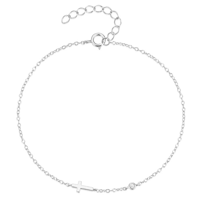 Elenza Zilveren Armband met Fijn Kruis en Kristallen