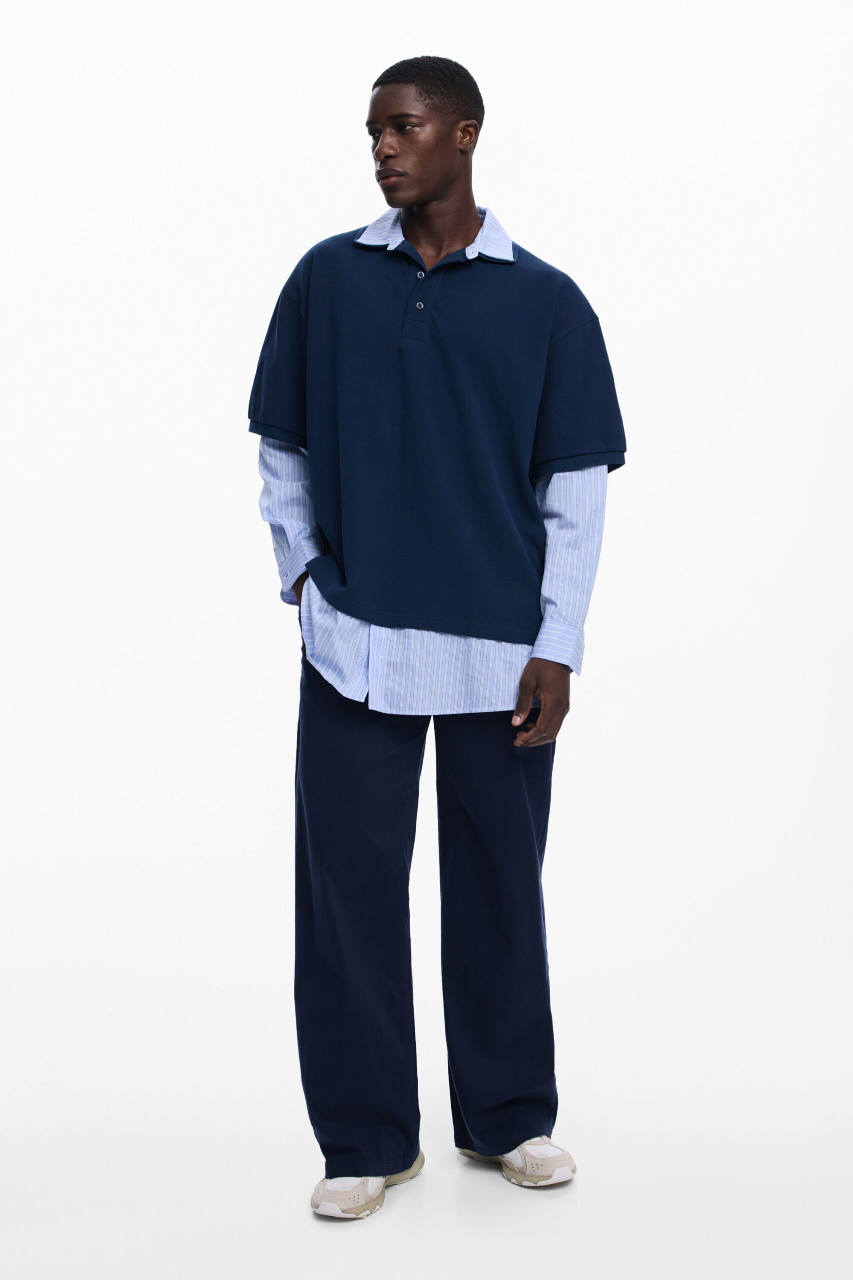 Oversized T-shirt die de stijl van een polo combineert met een overhemd, met mouwen, kraag en zoom in gestreepte popeline die contrasteren met het lichaam geïnspireerd op een polo