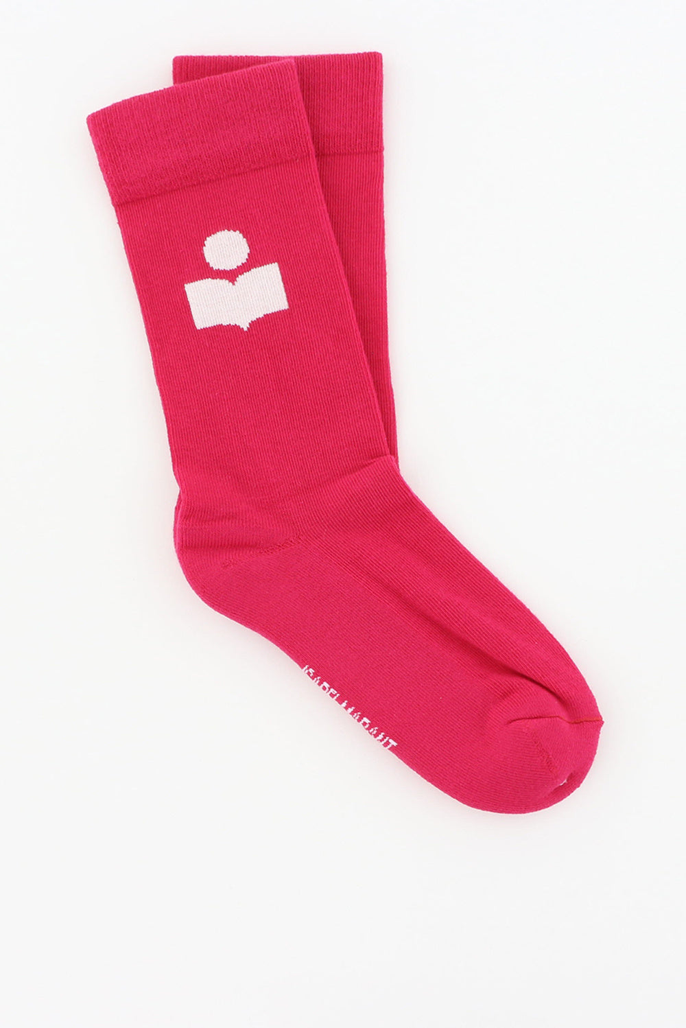Toffe sokken van Isabel Marant, model Siloki in het raspberry, of wel roze. De sokken zijn tot enkelhoogte en voegen naast een leuke kleur ook een sportieve touch aan je outfit. Combineer deze sokken met leuke sneakers van Isabel Marant voor een totale look!