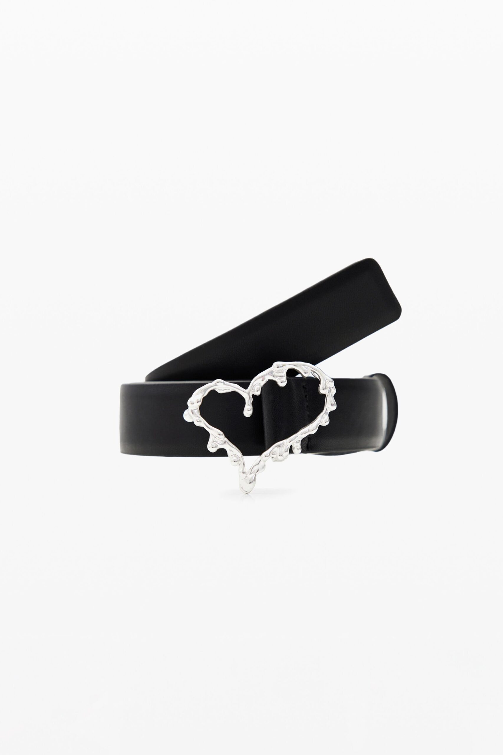 Effen leren riem met messing gesp in de vorm van een hart met een ambachtelijk effect. Ontworpen door Gala Meyer.