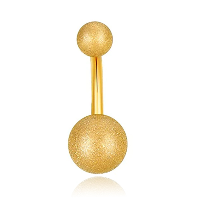 Het steeltje van de piercing heeft een glanzende afwerking. Deze piercing is uitgevoerd in een mat gouden kleur.