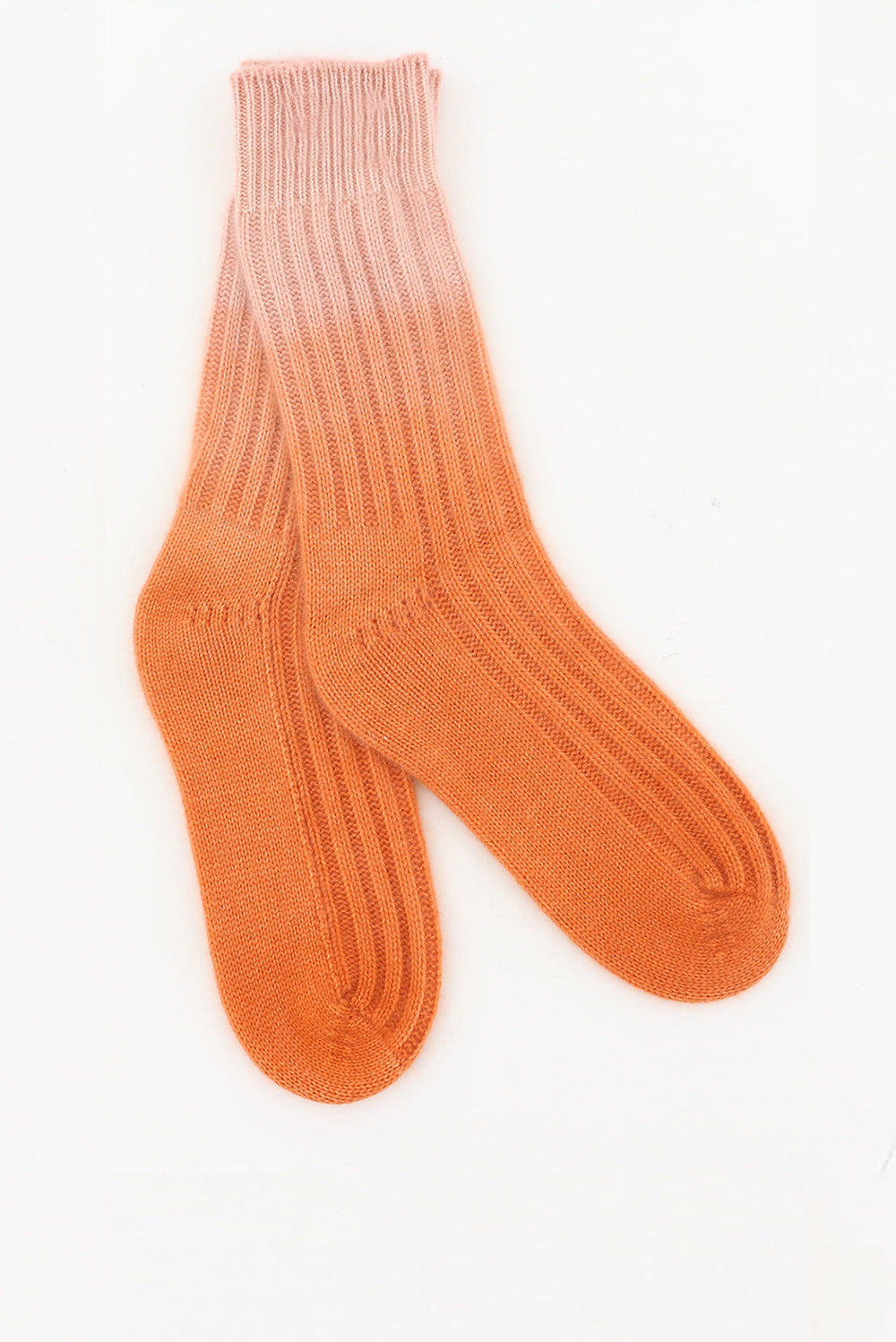 Deze prachtige zachte sokken van Mell O Cashmere zijn gemaakt van 100% cashmere. Draag deze te leuke oranje dip dye sokken in je favoriete sneakers. De sokken zijn handgemaakt in Nepal.