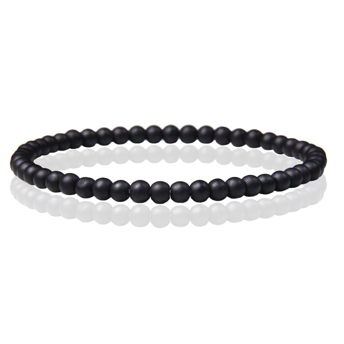 De armband is versierd met 4mm kralen van natuursteen en is elastisch, zodat hij om vrijwel elke pols past.