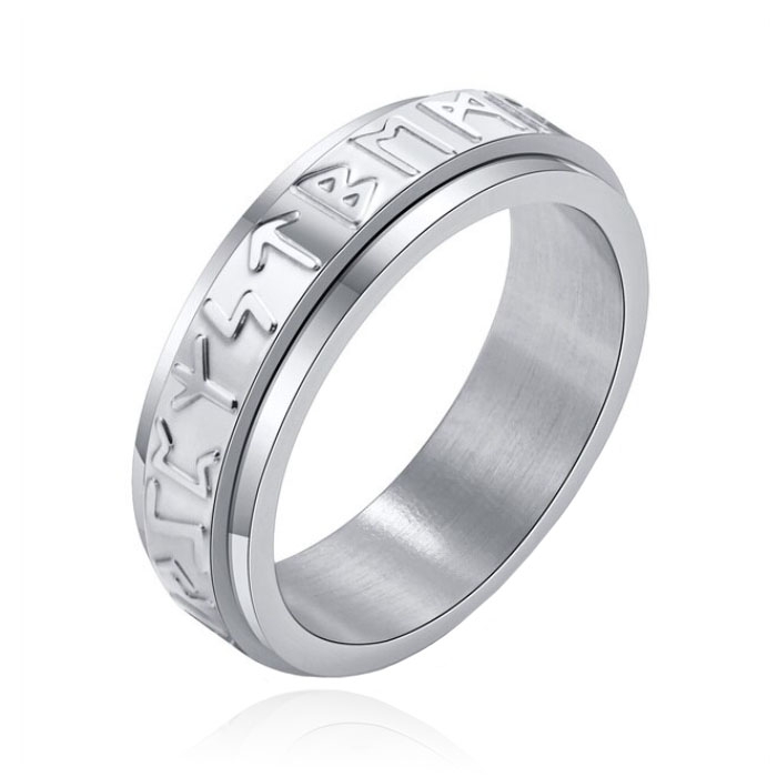 De ring is voorzien van een band die is versierd met noorse tekens. Hierdoor heeft de ring een authentieke en opvallende uitstraling.