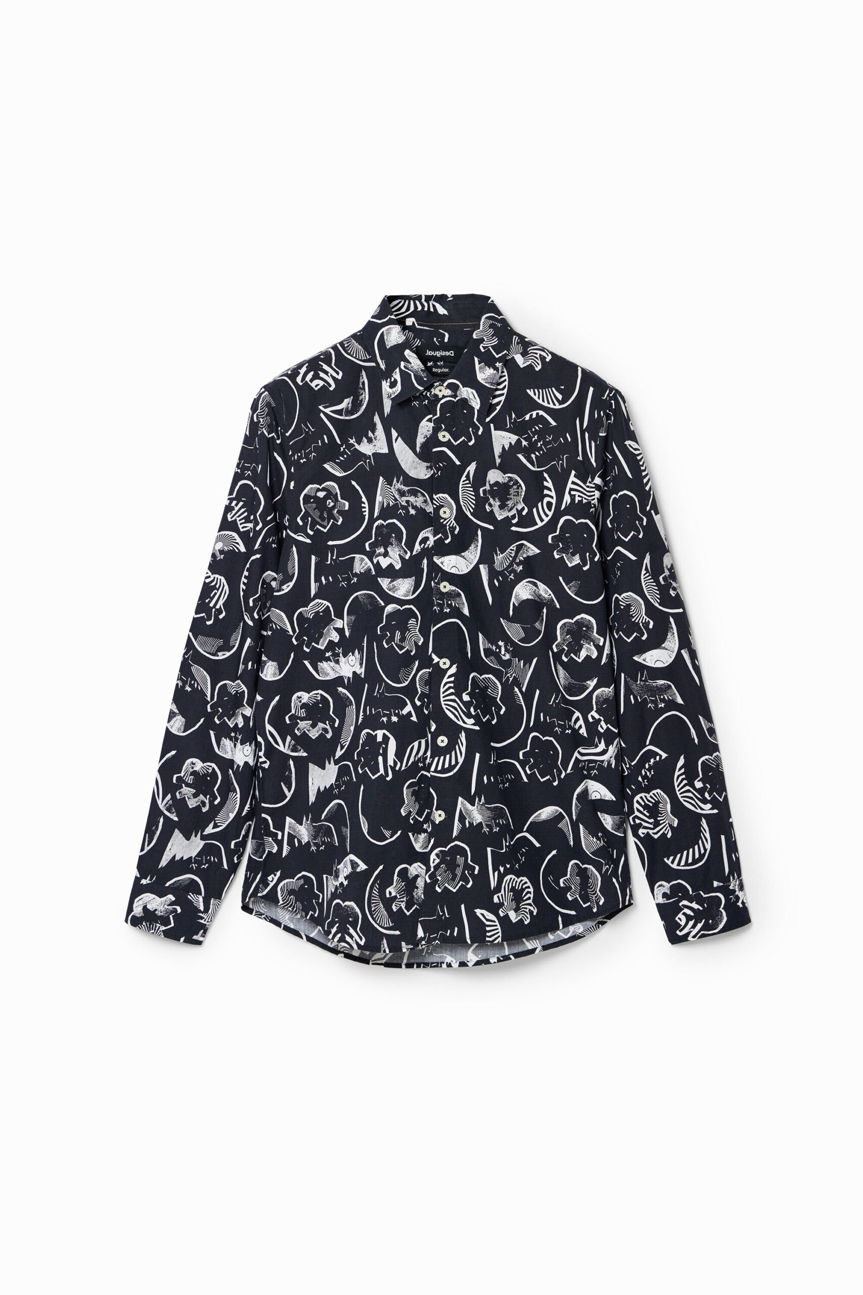 Shirt van katoenen popeline met lange mouwen en een contrasterende print met arty motieven.