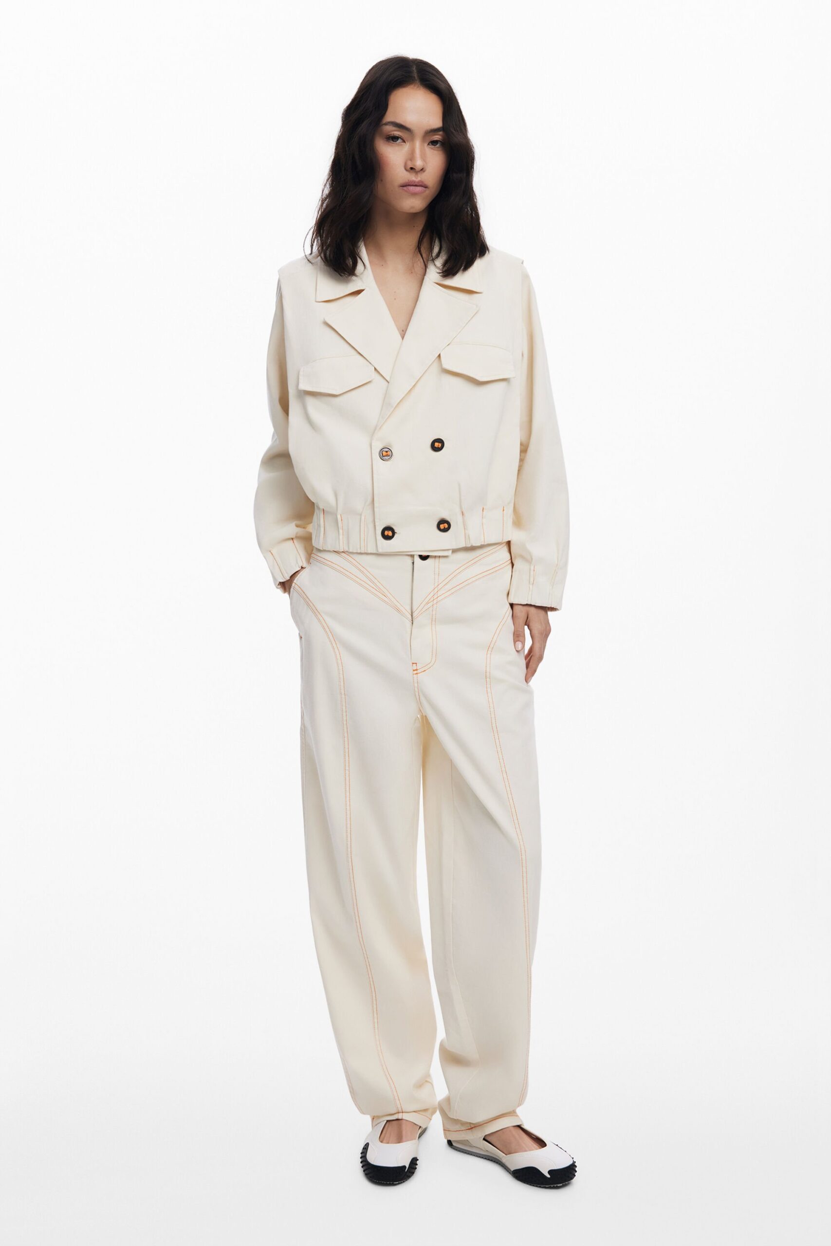 Lange broek in ballonstijl, met twee zakken aan de voor- en achterkant in effen kleur.