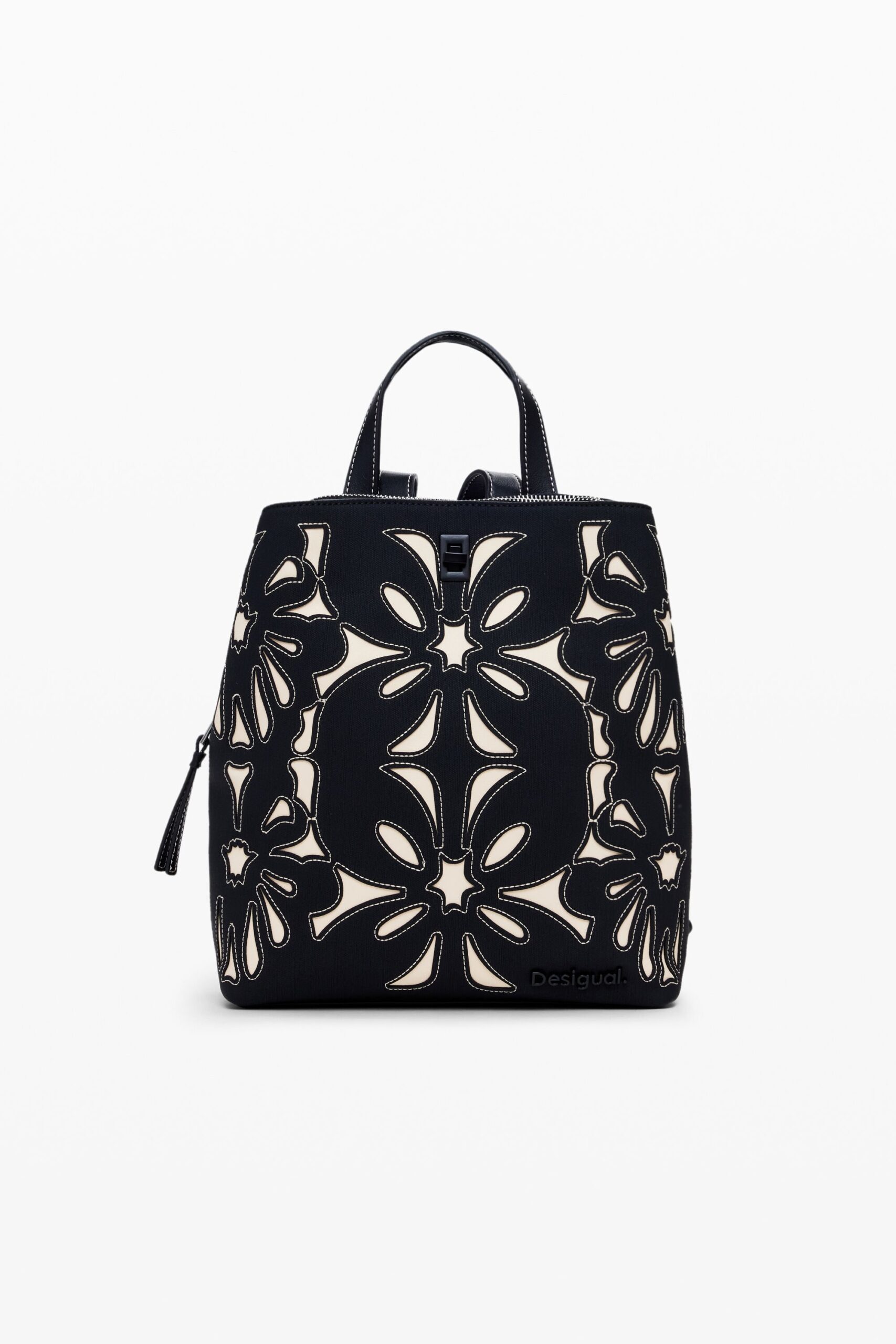 Kunstlederen rugzak met klein buitenvak, verstelbare riemen, extra handvat, ritssluiting en bloemenprint