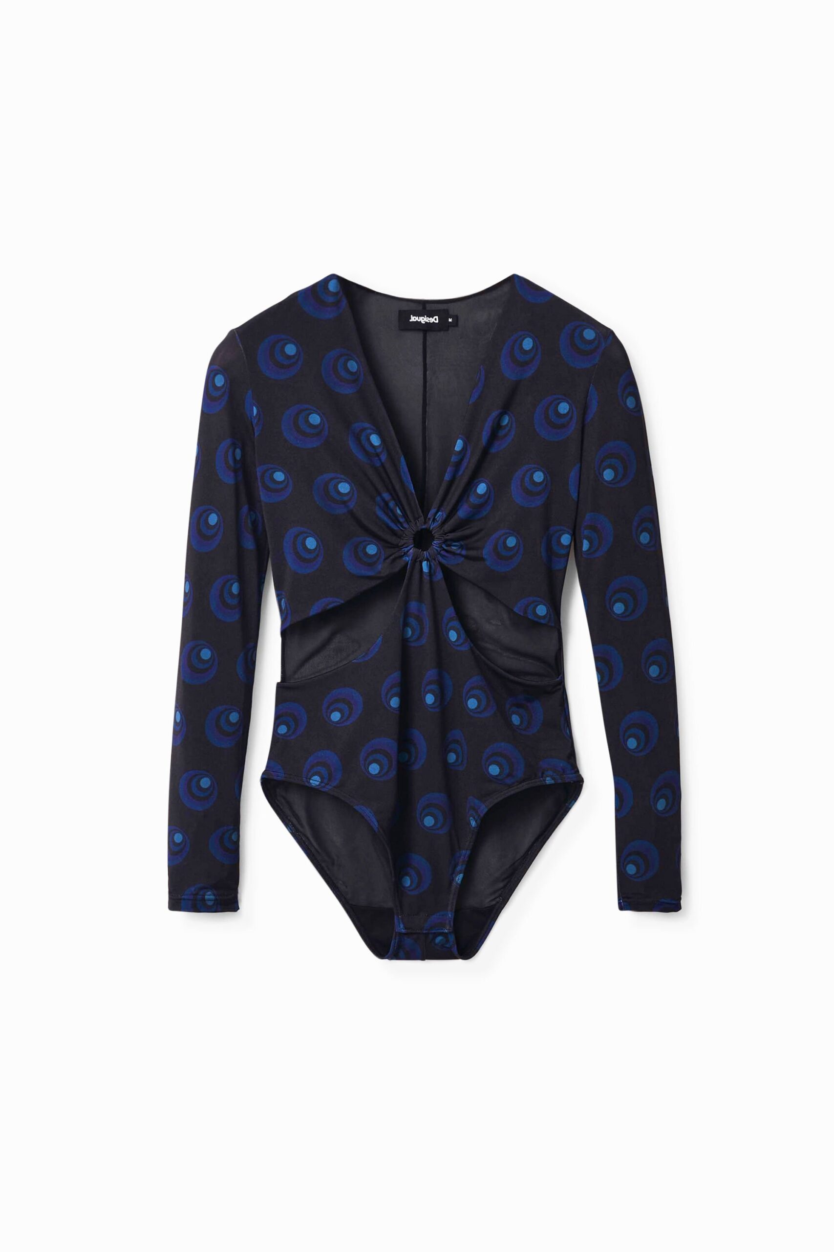 Body met cut-out en geometrische cirkelprint – BLUE – S
