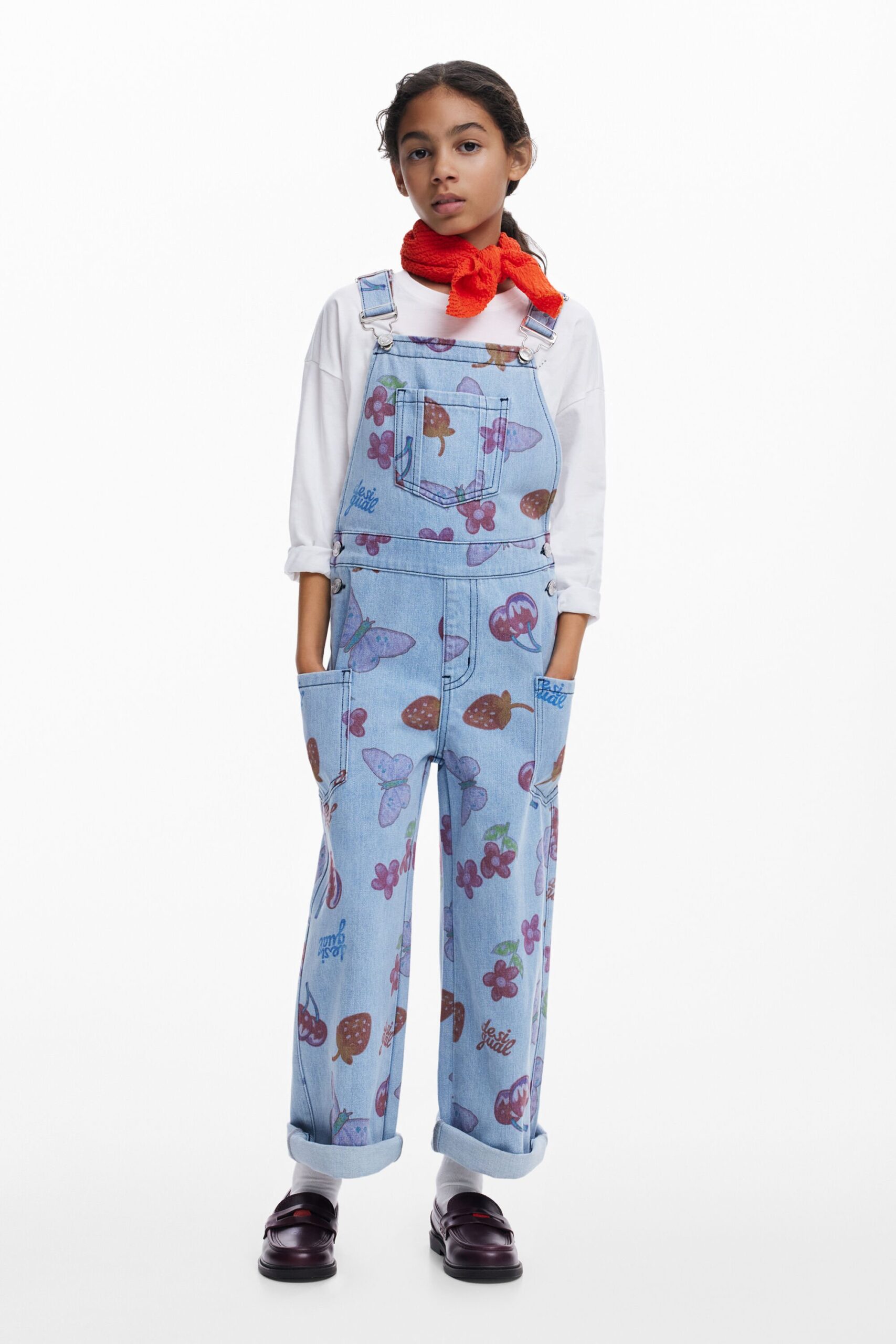Denim tuinbroek met fruitprint – BLUE – 7/8