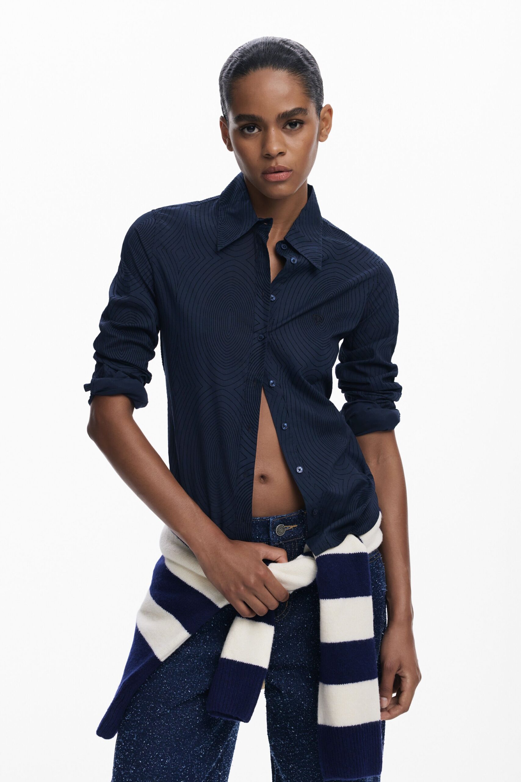 Overhemd van stof met texturen die geometrische vormen creƫren met lange mouwen, in effen kleur en logodetail op de borst.