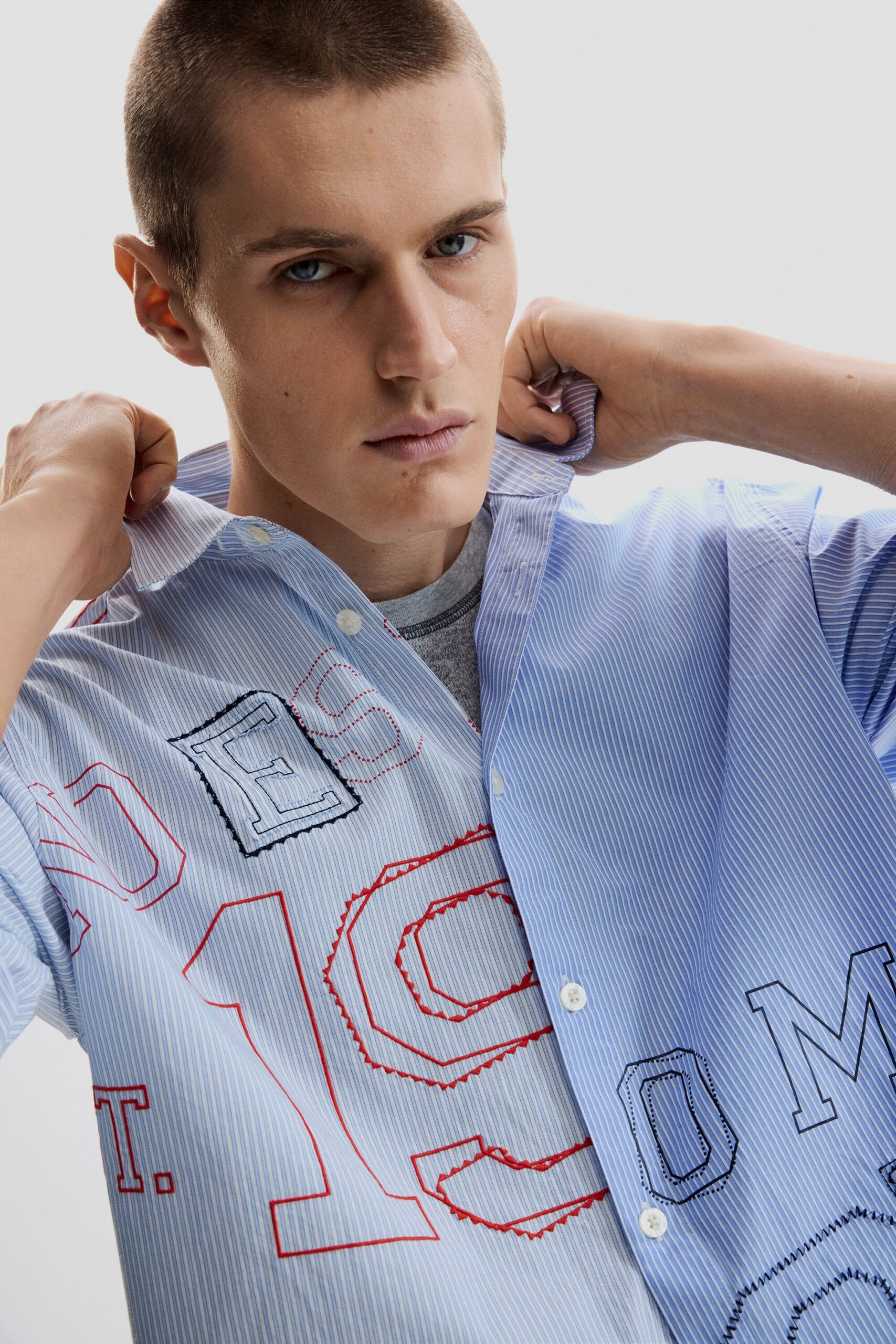 Overhemd met lange mouwen van 100% katoenen stof in lichtblauw. Klassieke overhemdkraag en sluiting met knopen aan de voorkant. Geborduurd detail op de borst en rechtsonder.