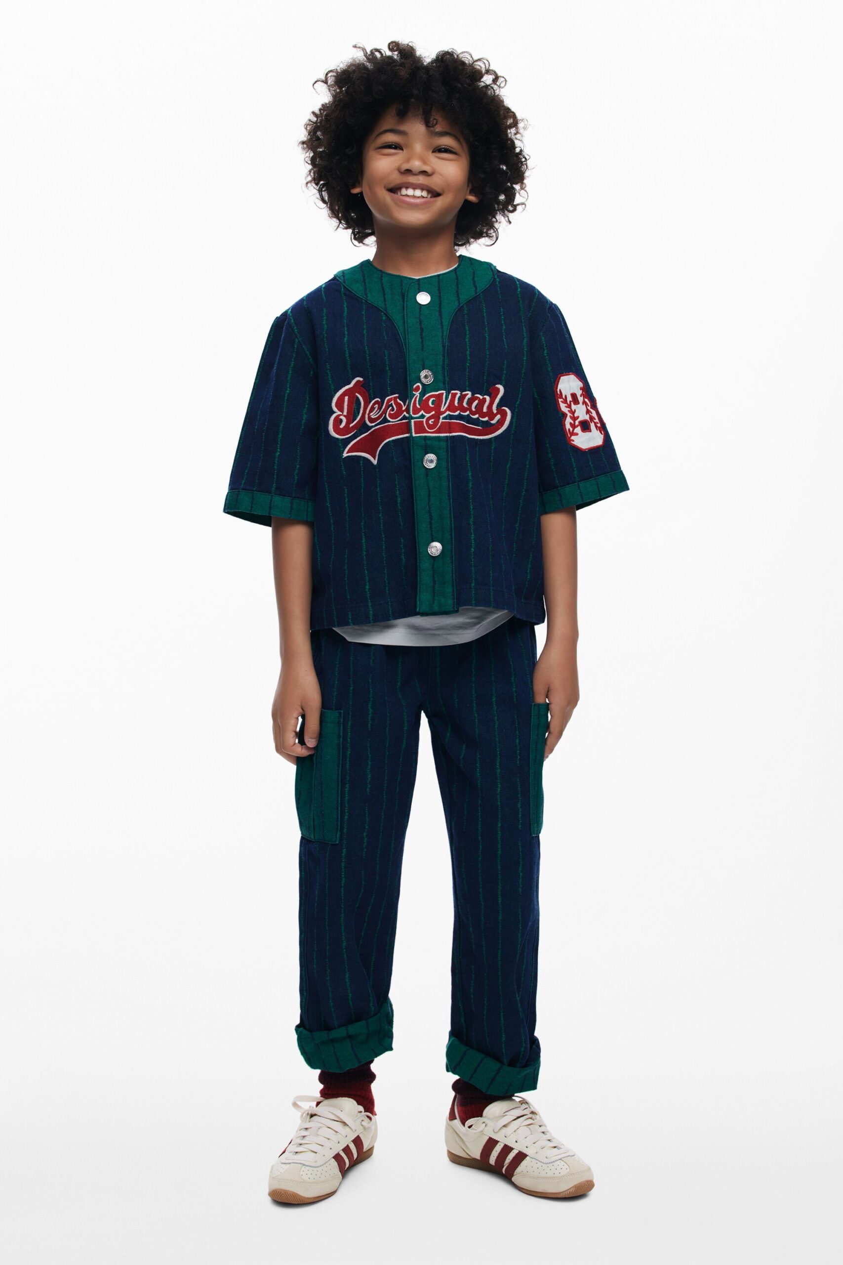 Jeans met rechte snit met elastiek in de taille, grote zijzakken en een print van verticale strepen.