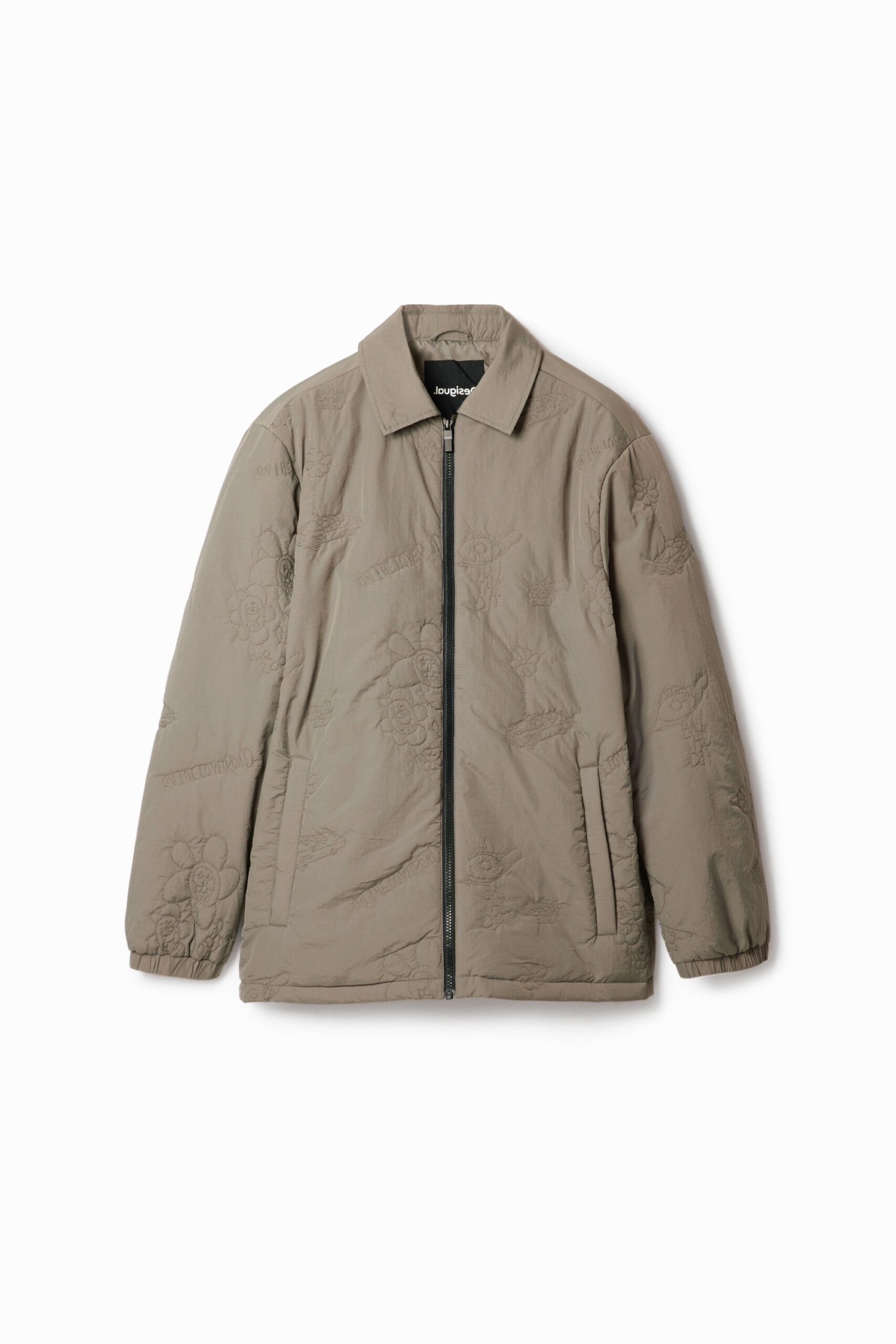 Losvallend jack met dunne wattering, arty ton sur ton borduursels, ritssluiting en binnenvoering.