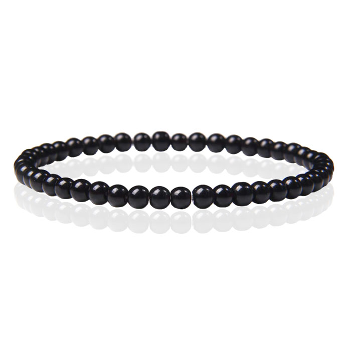 De armband is versierd met 4mm kralen van natuursteen en is elastisch, zodat hij om vrijwel elke pols past.