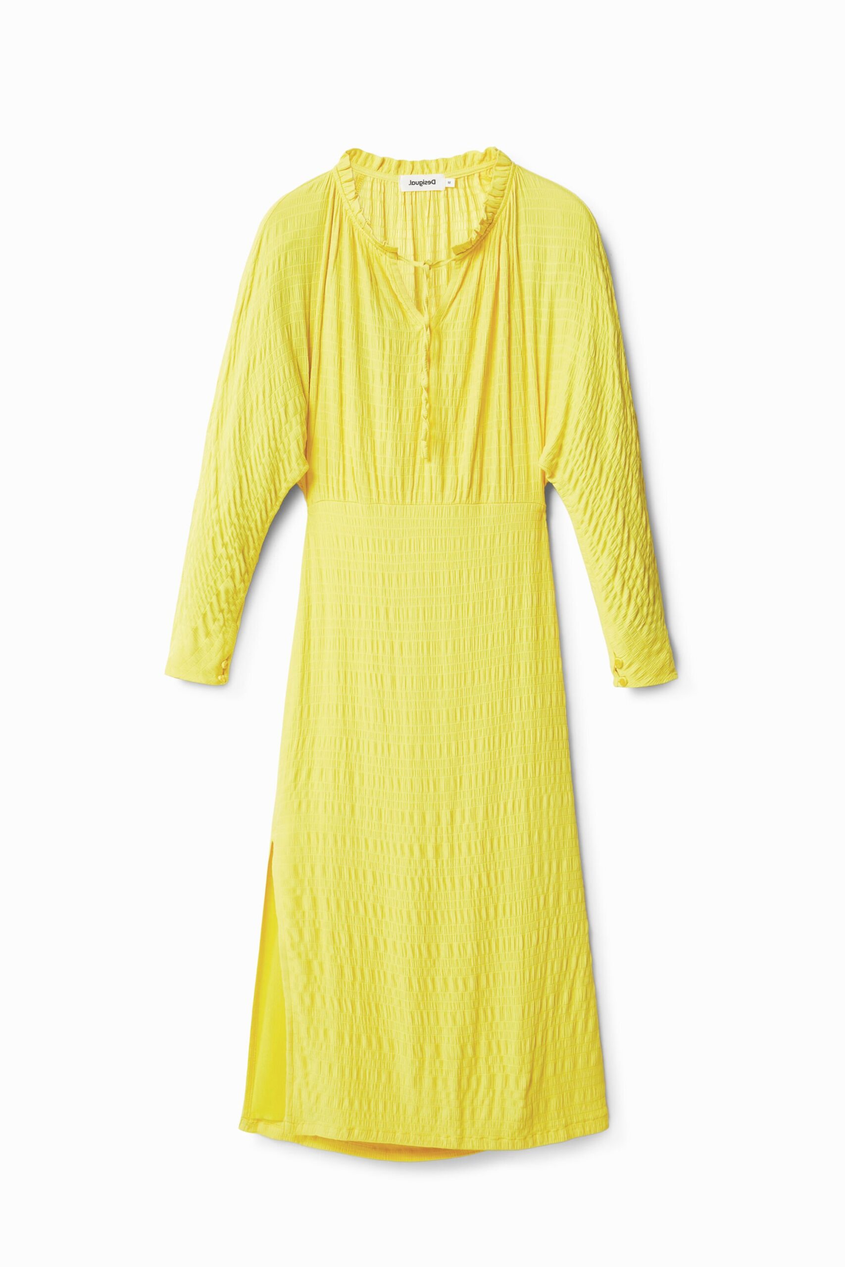 Aansluitende midi-jurk van getextureerde stretchstof met strik, 3/4-mouwen en cut-out op de rug.