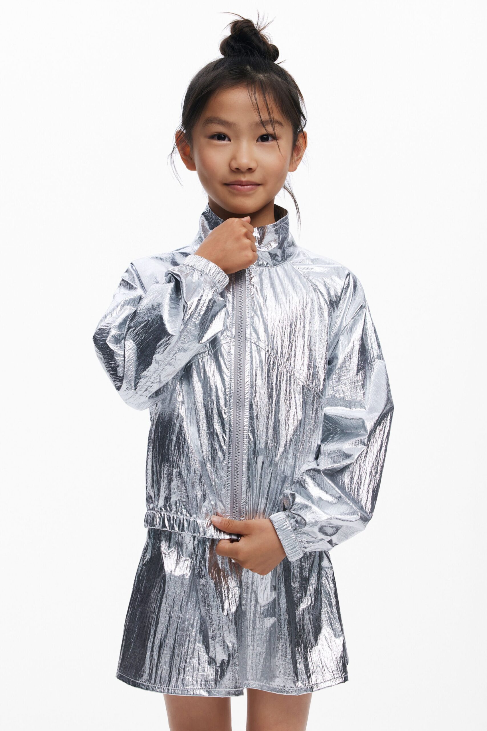 Omkeerbaar dun jack in windjackstijl met elastiek in de taille, decoratieve naden en ritssluiting.