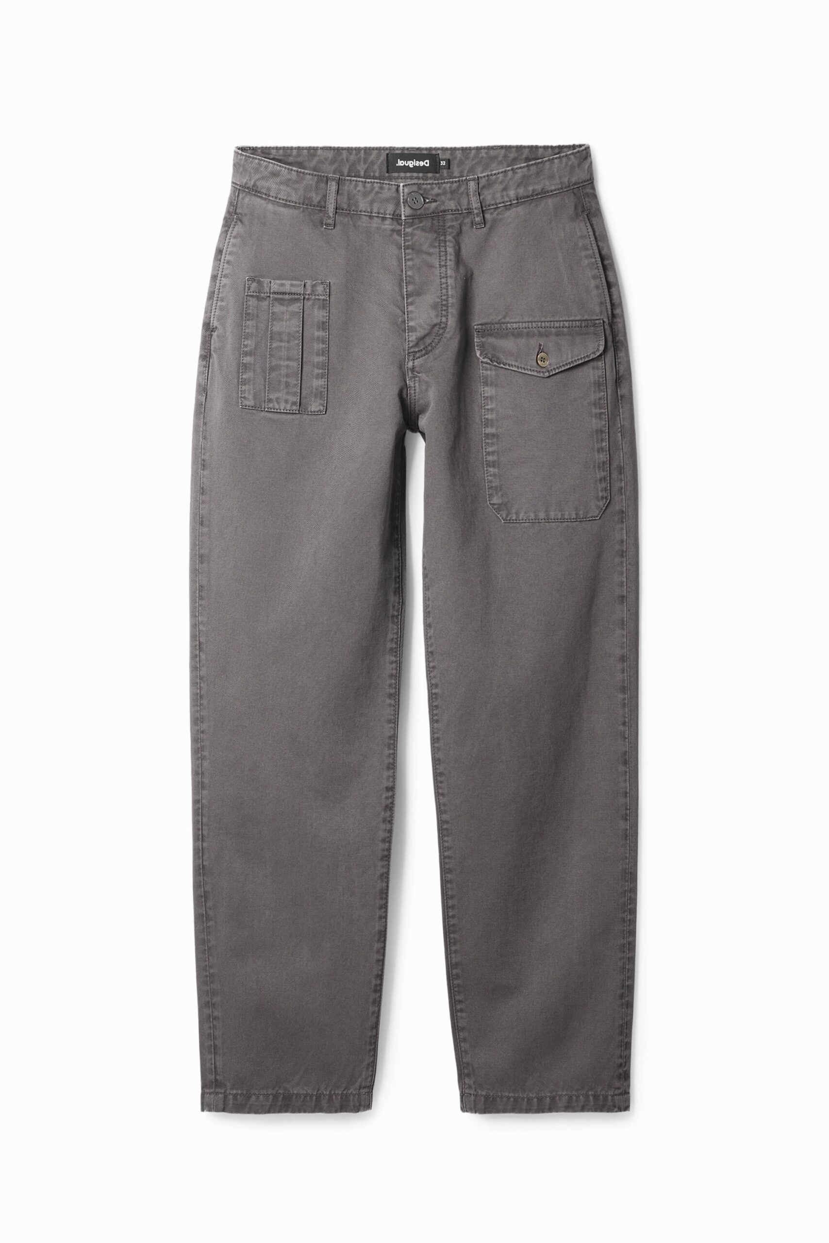 Rechte broek van keperstof met gewassen effect en cargozakken.