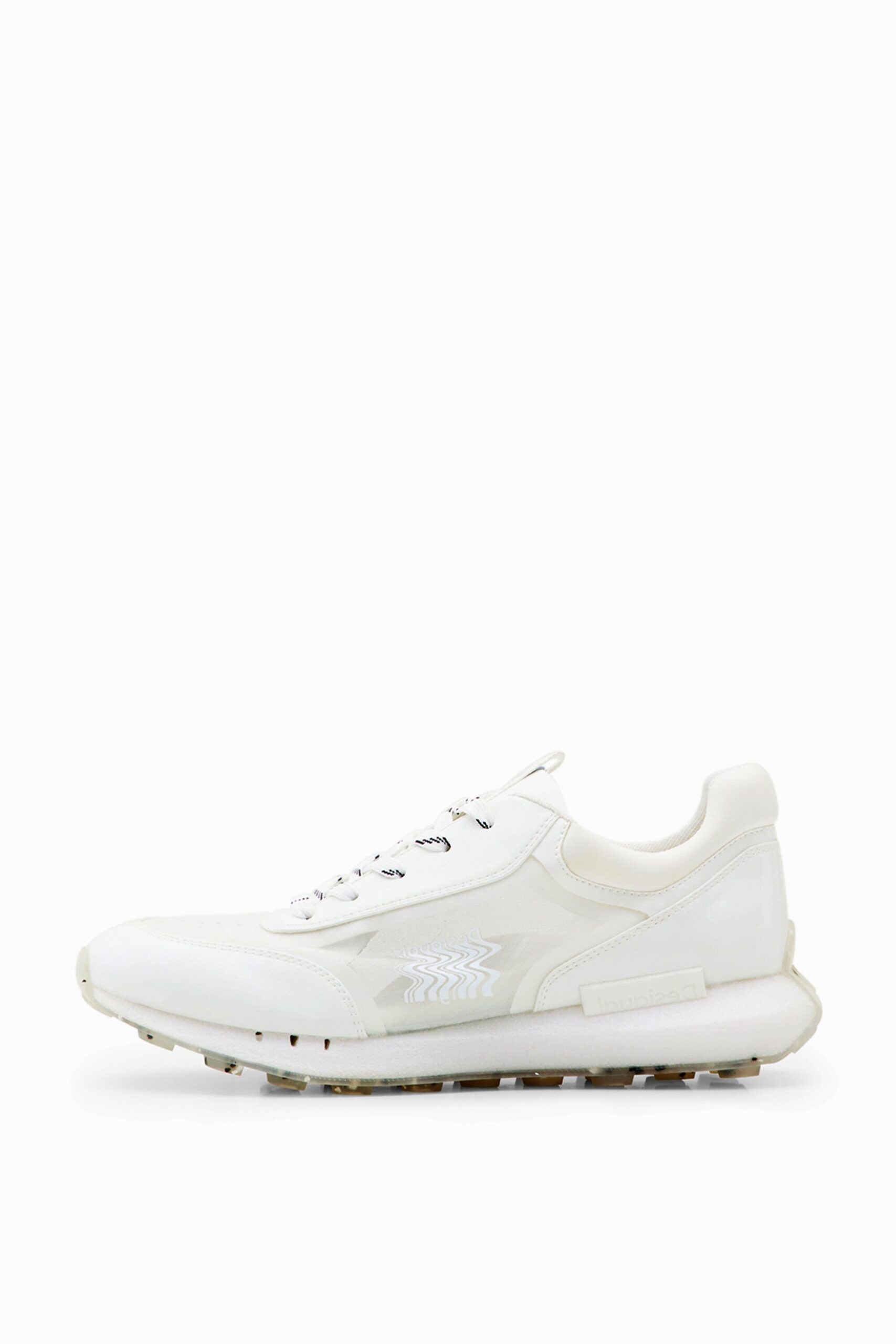 Zeer lichte sneakers in runnerstijl met schuimzool, comfortabele binnenzool, transparante zijkanten en lakleren details.