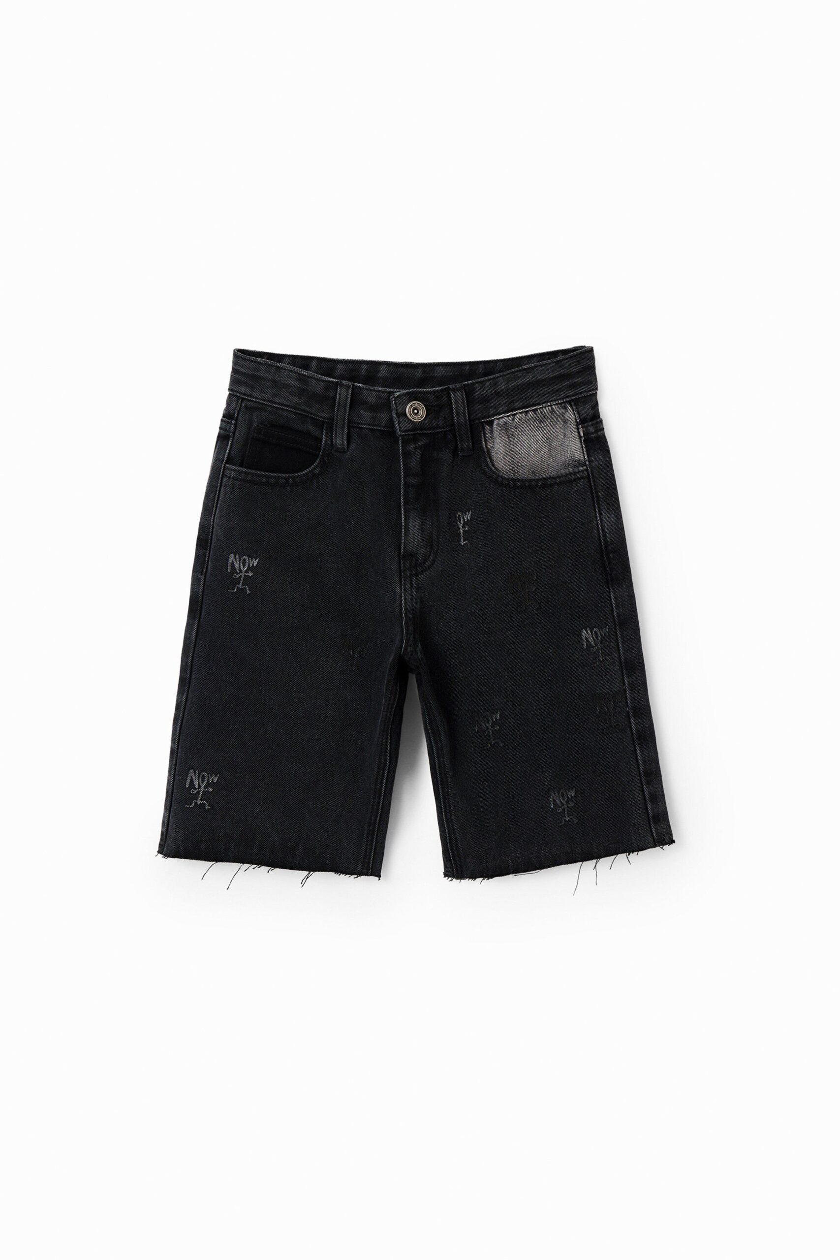 Denim bermuda met gewassen effect en arty in een handgeschilderde stijl.