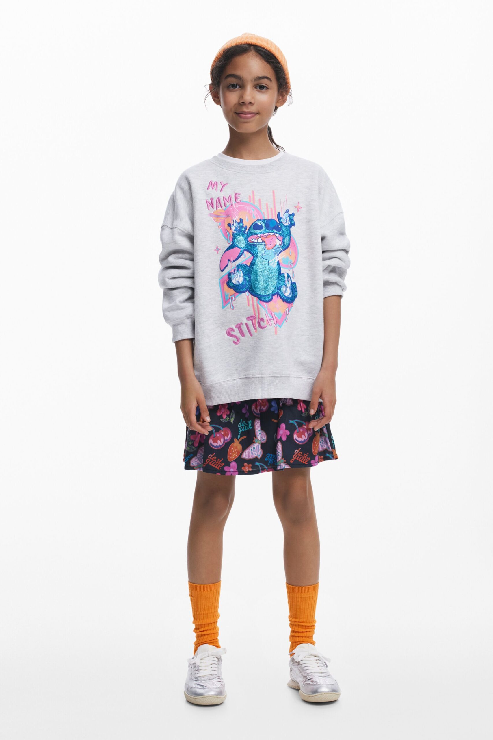 Trui met lange mouwen en ronde hals met Stitch™-print en afwerkingen met glitter en borduursels.