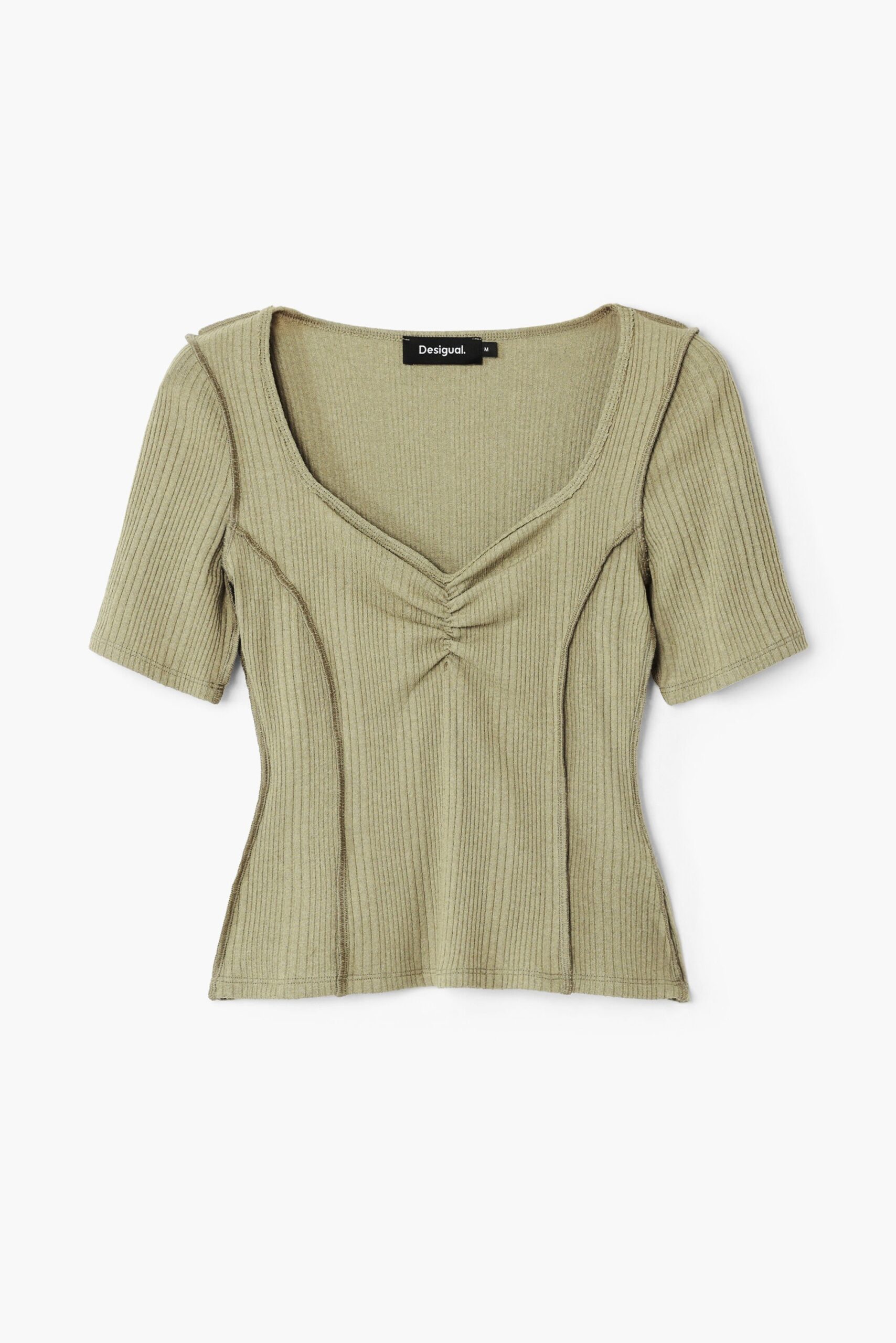 Korte mouw T-shirt met ronde hals en geplooid detail bij de halslijn