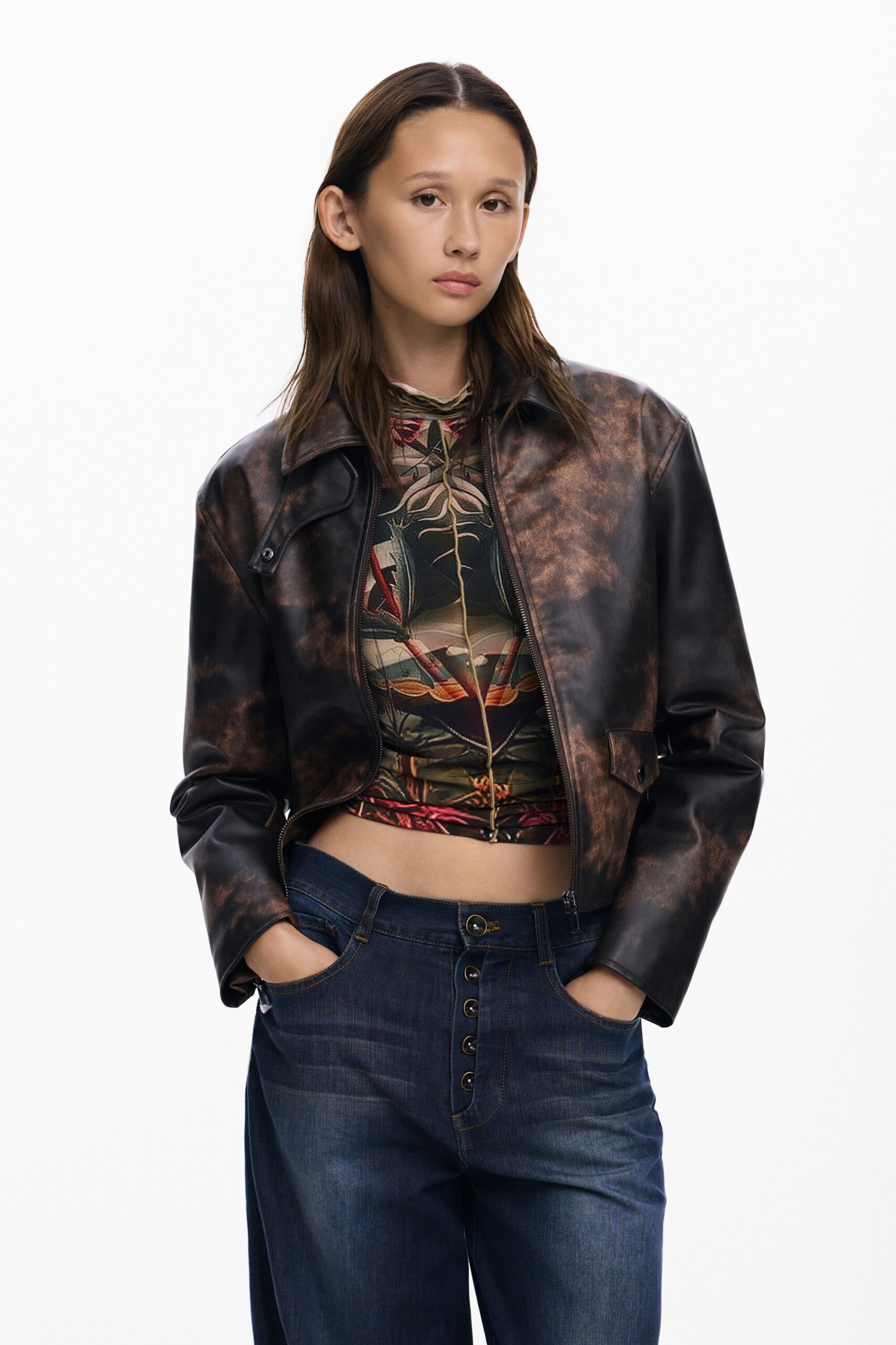 Jack van het type bomber met tie-dye print, voorzak en verstelbare lussen.