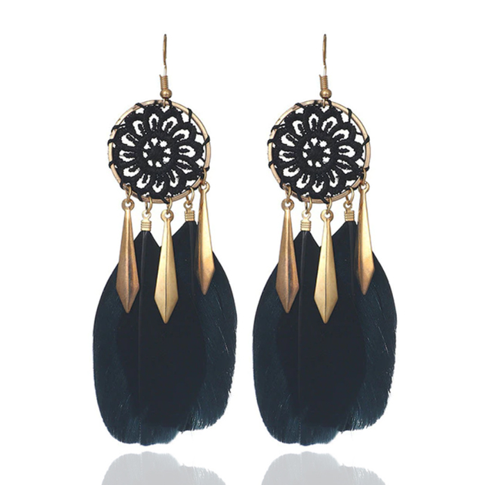 Dromenvanger oorbellen van Deja Jewels met prachtige zwarte veren.