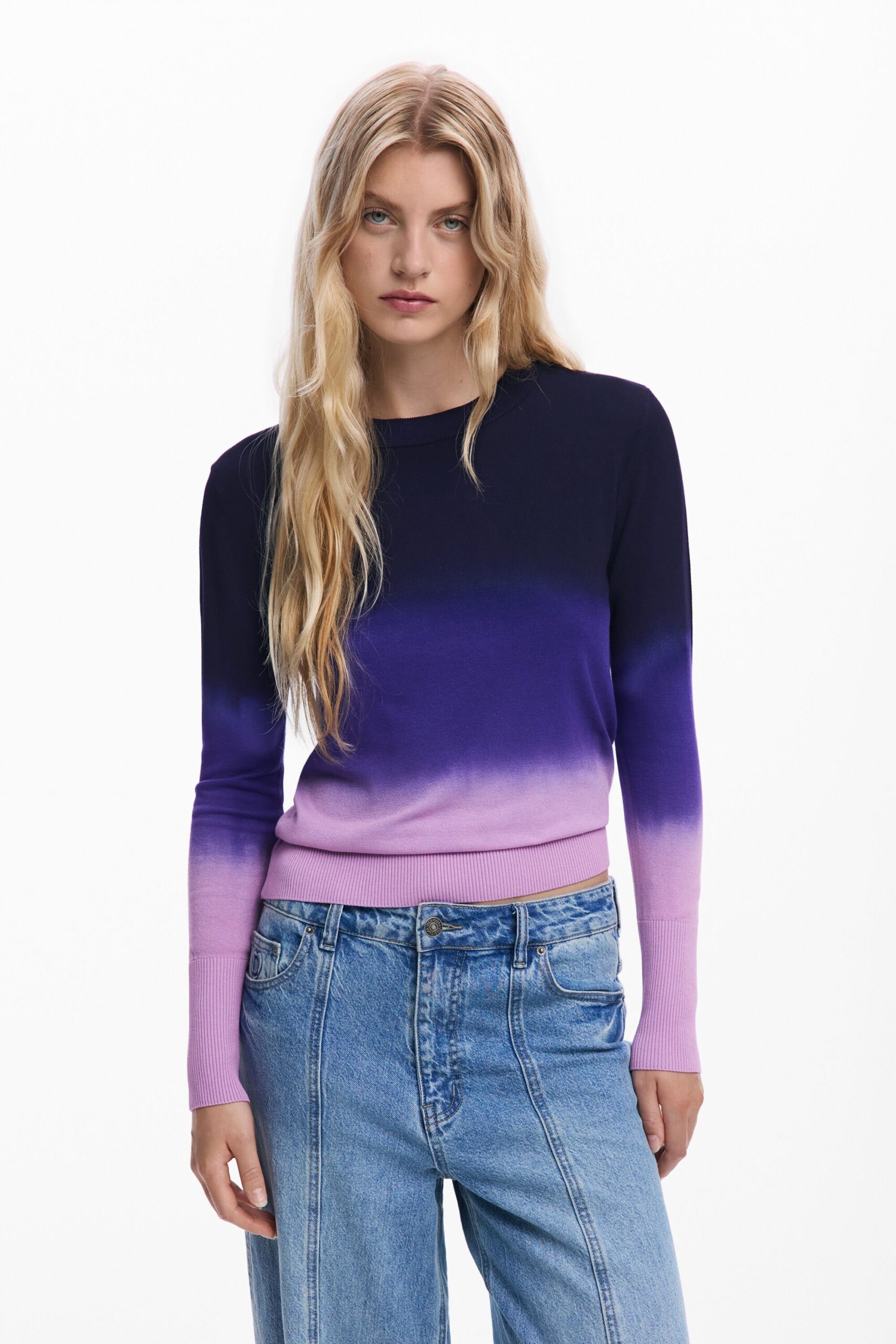 Fijn recht gesneden trui in kleurverloop, gemaakt van gerecyclede materialen.