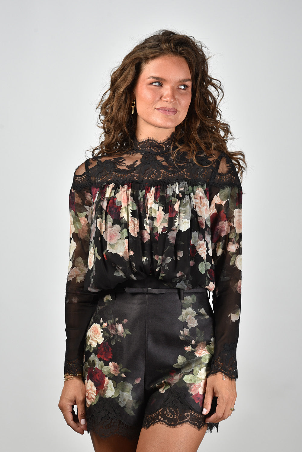 Zimmermann blouse Hypnotic Lace Yoke 5245TF251 black cascade